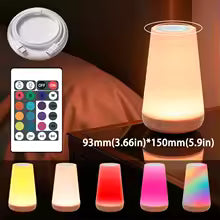 Portable, dimmable bedside lamp with touch and remote control for perfect lighting anytime, anywhere.